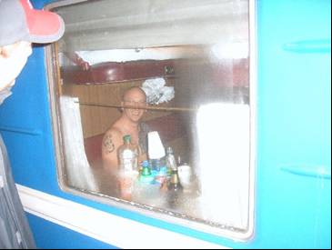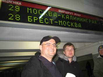 Ребятам из Москвы так не терпелось как можно быстрее очутиться в Минске, что они прибыли аж в 6 часов утра. Встречать москвичей в столь ранний час отправились Юра (balu), Леша (pribalt) и Дима (boa eye). Прибывшие были встречены громогласным "Понаехало тут!" и одарены ящичком "живительного эликсира".