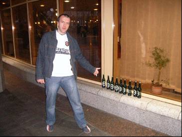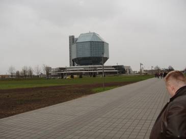 Путь от метро до библиотеки был недолгий, однако все так задубели, что возжелали снова погрузиться в приятную атмосферу какого-нибудь минского паба. К тому же пиво, выпитое в пиццерии, дало о себе знать, поэтому, использовав библиотеку почти по назначению (заодно оценив новаторские достижения белорусских архитекторов при сооружении туалетов), все двинули в центр Минска искать уютный паб. По дороге была куплена большая партия фото с изображением "батьки" (т.е. Лукашенко А.Г.), как сувенир из Беларуси.
