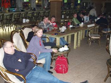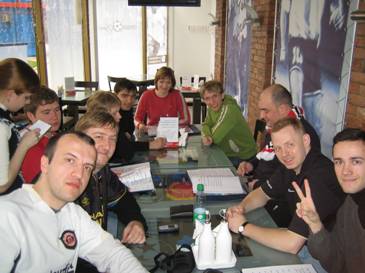 К 12.00 все стали подтягиваться к гостинице "Орбита", в которой разместились гости. Все стали собираться в фойе – вроде не так много было народа, а сбор продолжался в течение часа – дольше всех ждали Мишу (RVN ). В конце концов, разделившись на 2 части, первая группа выдвинулась на завтрак в близлежащую пиццерию. Заведение понравилось не только отличной итальянской кухней, но и наличием супер-столика: