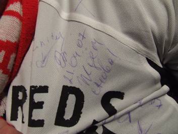 Каждый, кто имел желание, оставил надпись на память на этой майке.