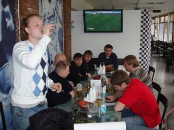Немного оздоровившись после тяжелой субботы, все попрощались с отбывающими в Псков и выдвинулись на просмотр матча «челски» с «сороками» в очередной бар.